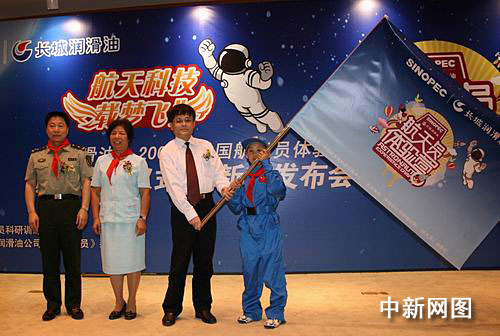 中新網(wǎng)成都5月21日電(記者楊杰)21日下午,航天英雄、中國航天員科研訓(xùn)練中心副主任楊利偉將軍等嘉賓在成都向來自“5•12地震”震中映秀的李俊鵬同學(xué)授航天員體驗營營旗,拉開了“長城潤滑油• 2009年中國航天員體驗營”四川招募活動大幕。這是“中國航天員體驗營”首次在四川地區(qū)公開選拔營員,10名幸運者將在暑期當(dāng)一回實實在在的“太空人”。