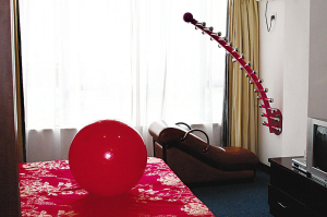 五十多平方米的房間內(nèi),燈光溫馨曖昧,一張大紅床格外引人注目,情趣用品一應(yīng)俱全。記者看到,跟一般的酒店里陳設(shè)不同的是,房間里有很多奇形怪狀的家具。據(jù)周某介紹,除了床是電動床以外,還有歡樂椅、情趣球、S形沙發(fā)等!斑@些可不是體操運(yùn)動器材,而是情趣酒店的特別設(shè)施,專門供夫妻情侶性生活用的。”