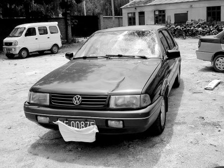 昨日,記者在渭南市公安局交警支隊(duì)高新大隊(duì)院內(nèi)見到了肇事車輛,其車牌被毛巾遮蓋。除擋風(fēng)玻璃嚴(yán)重破裂外,車輛引擎蓋也有凹陷。事故科一民警稱,事發(fā)當(dāng)晚8時(shí)30分左右,他們趕到現(xiàn)場(chǎng)時(shí)司機(jī)已不見了蹤影,通過(guò)電腦信息查詢,該車屬于渭南市審計(jì)局。民警隨后獲得一條信息是,當(dāng)晚發(fā)生事故時(shí)駕駛車輛的不是審計(jì)局的工作人員,該車系被借給外人駕駛,具體是誰(shuí)仍在調(diào)查中。民警表示,如果該司機(jī)在23日下午下班前未到案說(shuō)明情況,且無(wú)別的重大理由,其行為就是涉嫌棄車逃逸。當(dāng)晚記者截稿時(shí),致電交警隊(duì)詢問(wèn)肇事司機(jī)是否出現(xiàn),對(duì)方表示并未出現(xiàn)。
