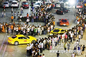 他介紹,這些豪車(chē)全部來(lái)自法拉利車(chē)友會(huì),是重慶法拉利經(jīng)銷(xiāo)商從全國(guó)組織來(lái)重慶參加一個(gè)車(chē)友聚會(huì),并可能在明天市內(nèi)一個(gè)場(chǎng)地舉行一個(gè)內(nèi)部賽車(chē)比賽。本來(lái)計(jì)劃共有30輛,結(jié)果只來(lái)了25輛。