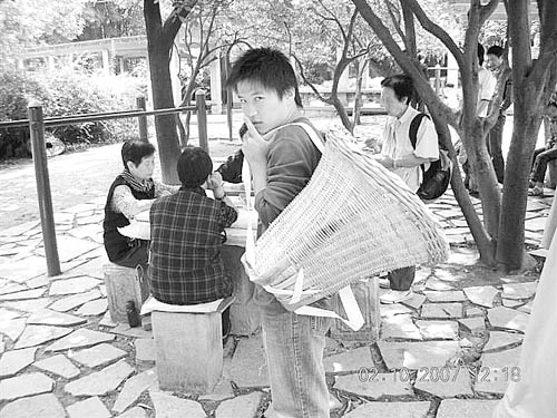 他的背篼,有自己身高的一半那么長,每次放上五六十斤重的大米、糧油,走上差不多兩里地,頂多能賺5元錢。每天,這個(gè)大學(xué)畢業(yè)生和貴陽街頭的其他“背篼”們一起,躲在瑞金北路能避雨遮陽的沿街屋檐下,或者在華聯(lián)、沃爾瑪一類的地方蹲點(diǎn),平均一天掙不到20元。