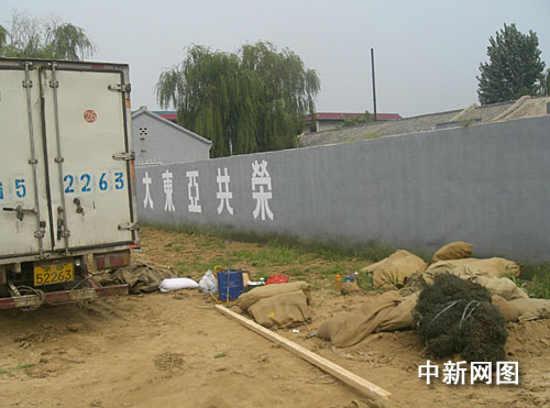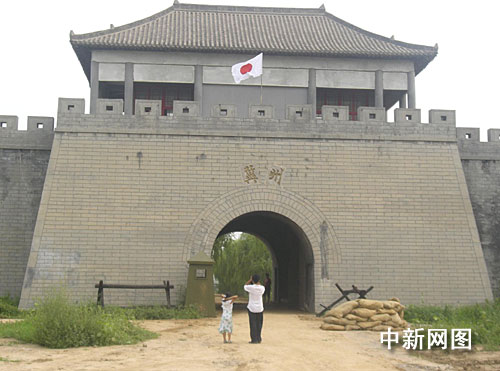 兵法城是該市的一個旅游景點,城門口進出的行人很多,很多人對城門上的日本國旗議論紛紛,還有一些市民掏出手機進行拍照。走進兵法城,記者看到院子里有很多“彈藥箱”之類的東西,還有幾個工人在平整院子,墻壁上刷有“大東亞共榮”的字樣,一問才知道是在拍攝電影。