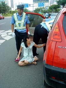 昨日上午9時30分許,海口市龍昆南路省婦幼保健院門口路段發(fā)生如此一幕:一名30多歲的女子因駕車時未系安全帶被執(zhí)法交警攔下,該女子看到交警準備開罰單時,試圖搶奪自己的駕駛證,但沒能得逞。該女子見狀,竟抱住交警,稱被交警“摸胸”,并開始辱罵交警。隨后,交警決定暫扣車輛并將其拘留時,該女子又坐在地上哭鬧起來,F(xiàn)場,數(shù)十位圍觀的市民目睹了這一情景,哭笑不得。