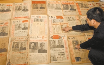“國(guó)慶方面各類報(bào)紙就有2噸,多從要搬家的機(jī)關(guān)事業(yè)單位,或者廢品收購站購來的。”楊翔飛說,收藏國(guó)慶報(bào)道的報(bào)紙,他花了13萬元左右。