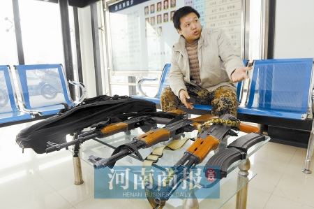 嫌網(wǎng)絡虛擬游戲不過癮,鄭州幾個CS發(fā)燒友買來AK47仿真槍準備玩實戰(zhàn)游戲。但民警提醒,拿仿真槍玩實戰(zhàn)游戲是違法的。