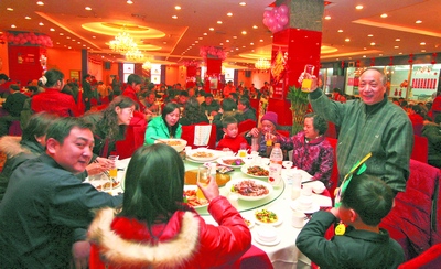 鄭龍(自由職業(yè)者):我家以前都是在家里吃團年飯,現(xiàn)在變成了到外面一邊吃一邊談,F(xiàn)在城里人的消費能力越來越強了,不管你是到哪里吃年夜飯,酒家也好,賓館也好,農(nóng)家樂也好,自己家里也好,關(guān)鍵是要吃得開心。