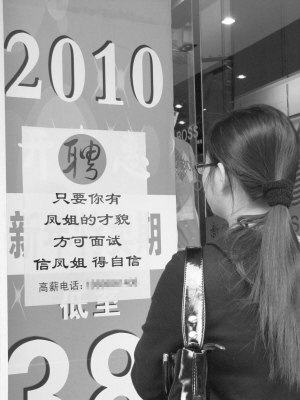 涂小姐還說,剛貼出這個招聘廣告的時候,店里的回頭率還挺高的。很多懂得“鳳姐”這個詞的年輕人,路過時還邊看邊笑,而年紀大一些的人不知道鳳姐是誰,就會跑到店里來問。不過,涂小姐覺得廣告的實際效果并不是很好,而且路人還會笑,她就把非礦店里的廣告剪掉了,新村店由于是貼上去的,沒有辦法剪,就一直貼著。