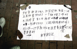 “相親男”還說,采取這種方式來溫州市區(qū)征婚,這次是第三次了,第一次是今年正月初四來的,第二次是在三四天前來的,都是在公園路一帶擺攤。他說他的家人對此行為并不知情。