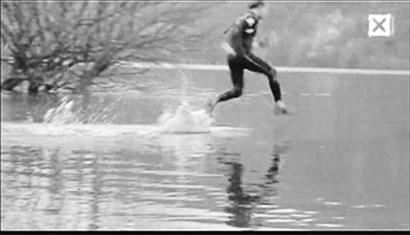 網(wǎng)上文章稱:“3名外國小伙在一個視頻里把中國武俠小說里的輕功 ‘水上漂’展現(xiàn)得淋漓盡致。視頻中,他們在葡萄牙一個湖上賽跑,在水面上奔跑了50多米后才落水。他們聲稱這是一種挑戰(zhàn)地心引力理論的新型極限運(yùn)動。視頻上傳到某網(wǎng)站后,在短短兩周內(nèi)吸引了超過200多萬人次瀏覽。視頻看起來可信度極高,不少質(zhì)疑它是騙局的網(wǎng)友也不得不承認(rèn),它拍得很高明!