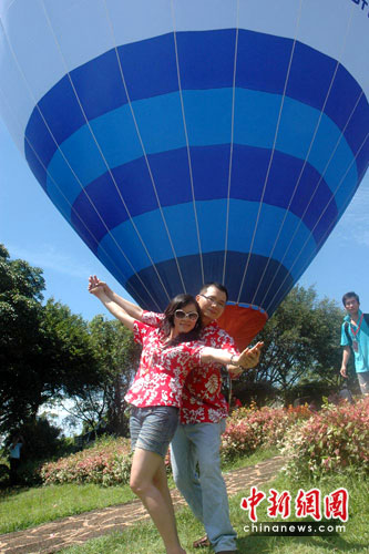 海口舉辦首屆熱氣球婚慶節(jié),發(fā)出“攜愛飛翔、情圓椰城”的邀請,在短短的半個月中吸引了上海、西安、重慶、北京、沈陽、廣州、深圳等中國各地及大洋彼岸的60對情侶報名。他們中有結婚多年的夫婦或新婚夫婦,也有即將步入婚姻殿堂的情侶。