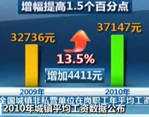 2010年中國城鎮(zhèn)平均工資數(shù)據(jù)公布
