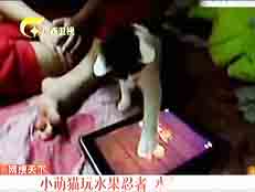 貓咪也玩IPAD 《水果忍者》分數(shù)高