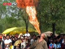 河南開封奇人喝煤油噴出7米火龍