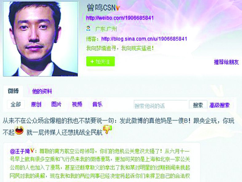 南航機(jī)長(zhǎng)微博罵乘客"跟央企玩,你玩不起"