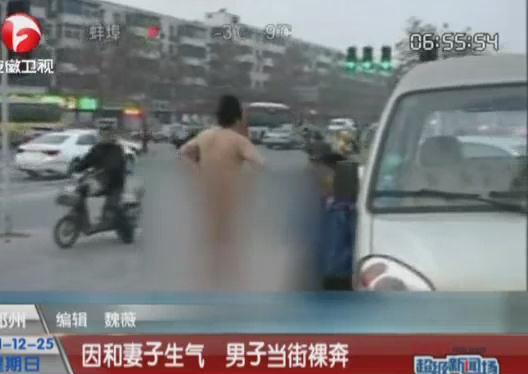 實(shí)拍:男子因和妻子慪氣當(dāng)街裸奔