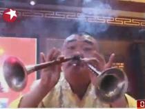 嗩吶達人“吹破天”展示鼻子吹嗩吶獨門絕活