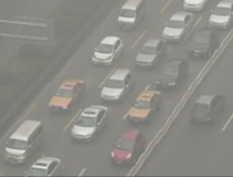 【解說詞】記者上午8點(diǎn)在現(xiàn)場看到,20余輛貼著“!弊值拇蟀驼R的停靠在出發(fā)點(diǎn),車上坐著的全是湖北省內(nèi)在漢的農(nóng)民工,他們每人一份的手提袋里放著一張免費(fèi)的愛心車票、一份年貨、一套書以及一份平安人生意外險(xiǎn)。愛心大巴將載著這些辛勞一年的農(nóng)民工們奔赴他們的家鄉(xiāng)與家人團(tuán)圓。