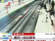 實(shí)拍:列車(chē)進(jìn)站 勇士跳下站臺(tái)拖救跌落男子