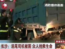 長(zhǎng)沙:追尾司機(jī)被困 眾人搶救生命