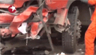 【解說】記者趕到事發(fā)現(xiàn)場時,出事的客貨車已被拖走,被撞擊的中間隔離護欄已完全扭曲變形。高速公路下,一塊汽車碎片上血跡斑斑,還殘留著慘烈事故的印記。據(jù)一位高速公路維護人員說,這是他有生以來看到最慘烈的事故,很多同事都不敢看。