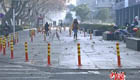 南京鬧市人行道布滿隔離樁 行人如穿“梅花樁”