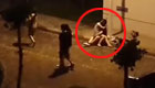 監(jiān)拍:摩托男腳踢加油機刀刺員工