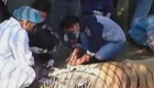實(shí)拍:男子情緒失控 腳系床單倒掛窗外