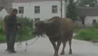 監(jiān)拍發(fā)狂水牛沖入鬧市 騎車女子連遭攻擊