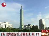 繼北京、上海、廈門之后,臺(tái)灣將擴(kuò)大開放大陸居民赴臺(tái)灣個(gè)人游試點(diǎn)城市的范圍。之前大陸方面提出了七個(gè)候選城市,經(jīng)臺(tái)當(dāng)局考慮之……