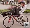 市民自制“躺車(chē)”自行車(chē)也能躺著騎