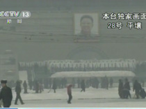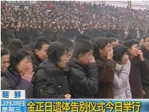 金正日遺體告別儀式28日在平壤舉行,平壤街頭送別金正日的群眾在雪中慟哭。