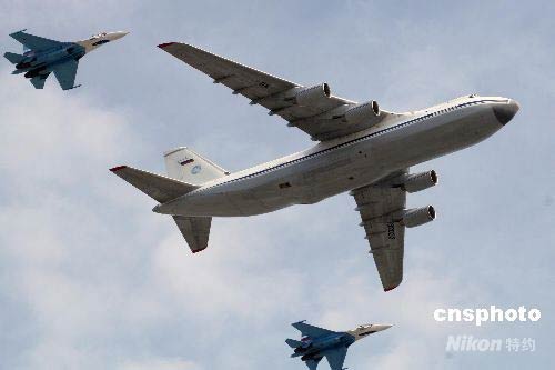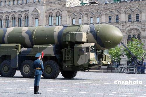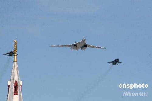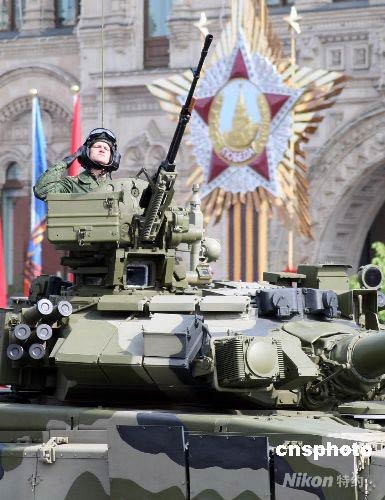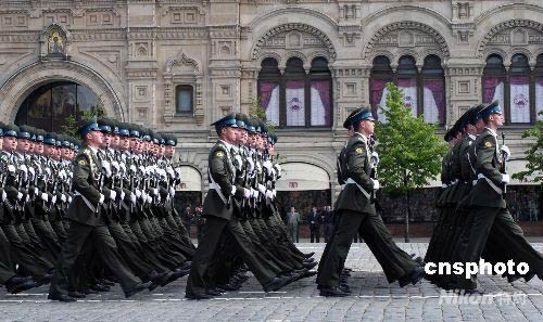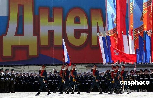 當(dāng)?shù)貢r間5月9日上午,俄羅斯為紀(jì)念衛(wèi)國戰(zhàn)爭勝利63周年,在莫斯科紅場舉行盛大閱兵式。約8000名官兵、111輛現(xiàn)代履帶式和輪式戰(zhàn)車以及32架飛機(jī)和直升機(jī)參加這次閱兵式。 中新社發(fā) 田冰 攝