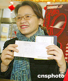 上海直飛臺灣包機(jī)第一名乘客拿到機(jī)票 |
