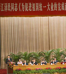 今年是江澤民《為促進祖國統(tǒng)一大業(yè)的完成而繼續(xù)奮斗》講話發(fā)表十周年,1月28日下午,北京人民大會堂將舉行一個隆重的紀念活動,中央領導屆時將出席活動并發(fā)表重要講話。