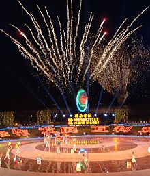 圖:臺(tái)灣高雄縣展臺(tái)上的水果大拼盤(10月19日17:55)