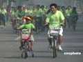 圖:濟(jì)南5歲小童參與“無車日”宣傳