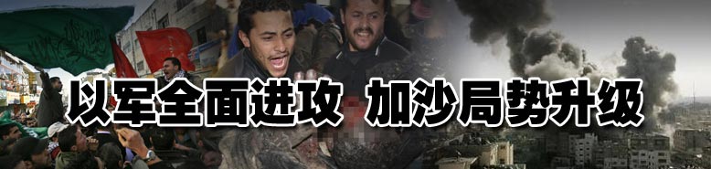 第十三日 以軍8日對至少25個目標進行了打擊,并襲擊了巴勒斯坦武裝人員的5個分隊。同時,以軍還在;饡r段內(nèi)襲擊了聯(lián)合國救援車隊,造成兩死一傷,遭到各方譴責。以色列軍方稱,當天有4枚來自黎巴嫩方向的火箭襲擊了以色列北部城鎮(zhèn)Nahariya,5人輕傷。黎巴嫩政府官員表示正調(diào)查此事。目前,軍事打擊已造成至少765名巴勒斯坦人死亡,超過3120人受傷,另外,以色列總理奧爾默特還暗示,攻勢可能擴大。【詳細】