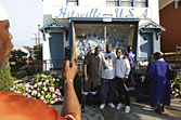 美國底特律歌迷在邁克爾·杰克遜宣傳窗外合影