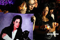 圖:歌迷在追悼會(huì)場外共同悼念邁克爾·杰克遜