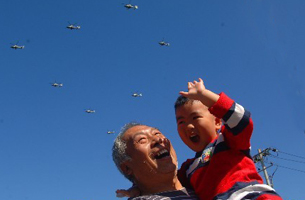 祖孫倆目睹國慶閱兵盛況