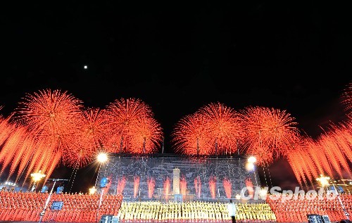 圖:國(guó)慶聯(lián)歡晚會(huì)上的絢爛煙花