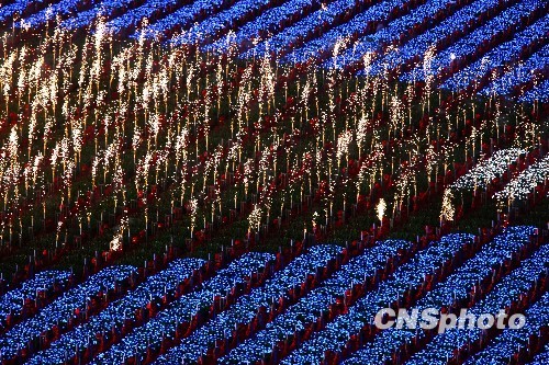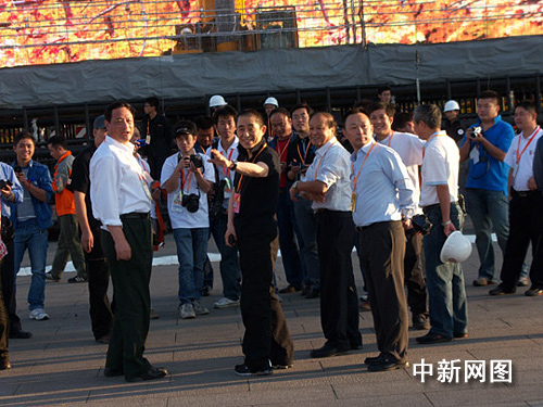 圖:張藝謀指導(dǎo)工作人員安裝網(wǎng)幕煙花