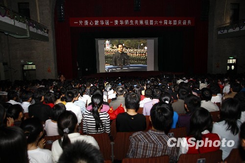 圖:清華學(xué)子觀看國(guó)慶慶典直播
