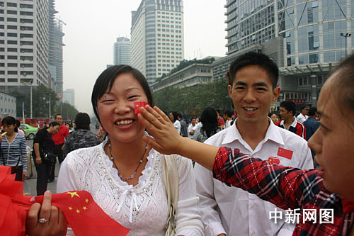 組圖:重慶市民街頭歡慶祖國(guó)60華誕
