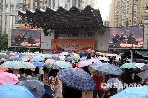 圖:數(shù)千群眾上海冒雨觀看閱兵轉(zhuǎn)播