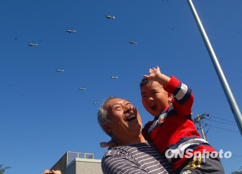 圖:祖孫倆目睹國(guó)慶閱兵盛況