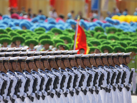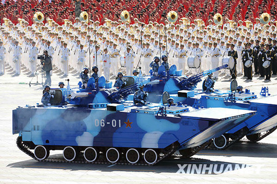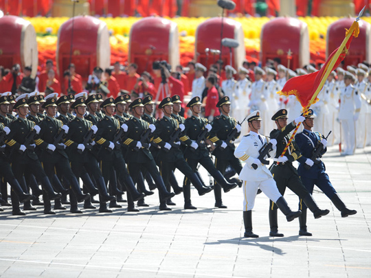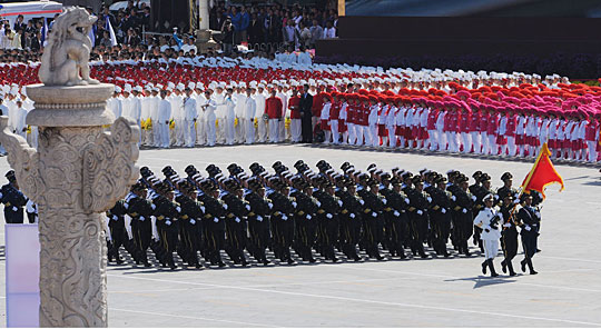 圖:三軍儀仗隊(duì)行進(jìn)受閱