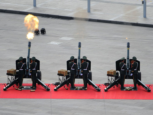 國慶慶典禮炮在天安門廣場(chǎng)鳴響