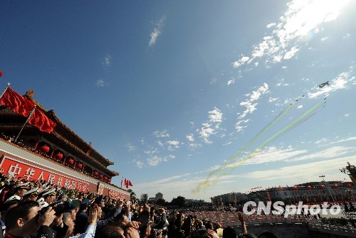 國慶閱兵:領(lǐng)隊(duì)機(jī)梯隊(duì)接受檢閱