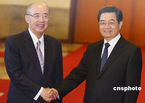 圖:胡錦濤會(huì)見(jiàn)中國(guó)國(guó)民黨主席吳伯雄一行